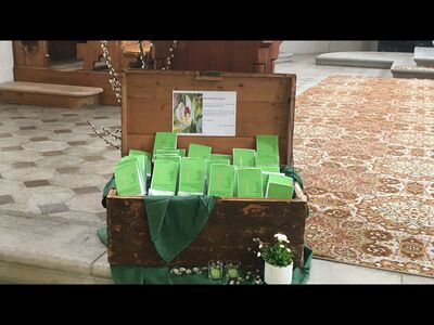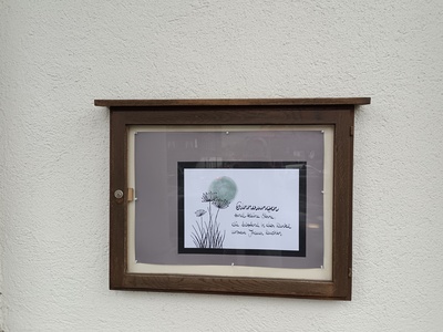Seit mehr als .... Jahren betreut Helene Vögel unseren Schaukasten. Je nach Jahreszeit und Kirchenfesten findet sich dort ein kleiner Impuls für die Pfarrmitglieder.