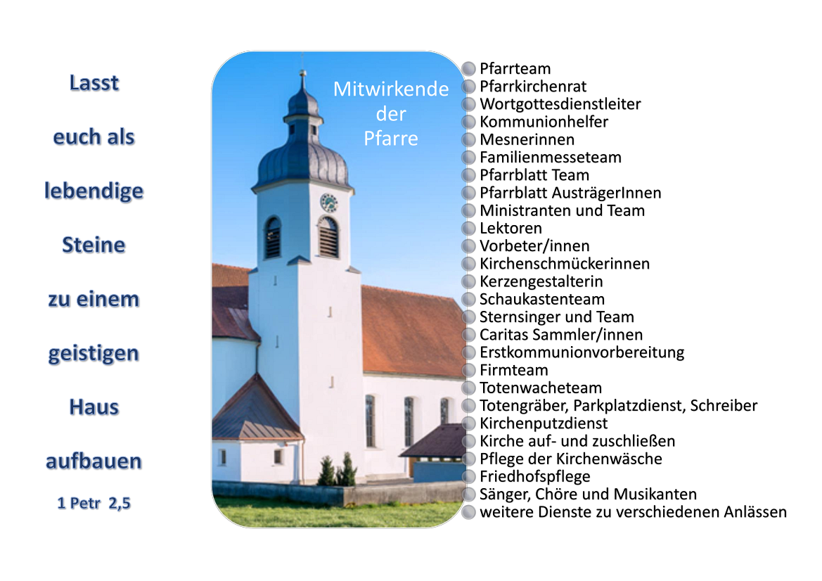 Viele Mitwirkende in unserer Pfarre denken und arbeiten mit,