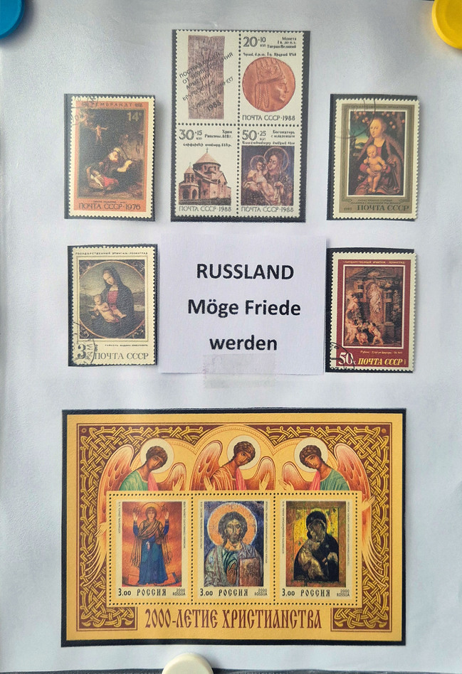 Im Eingangsraum unserer Pfarrkirche waren unzählige Briefmarken mit dem Motiv der Heiligen Familie aus sehr vielen Ländern und praktisch allen Kontinenten zu bewundern.