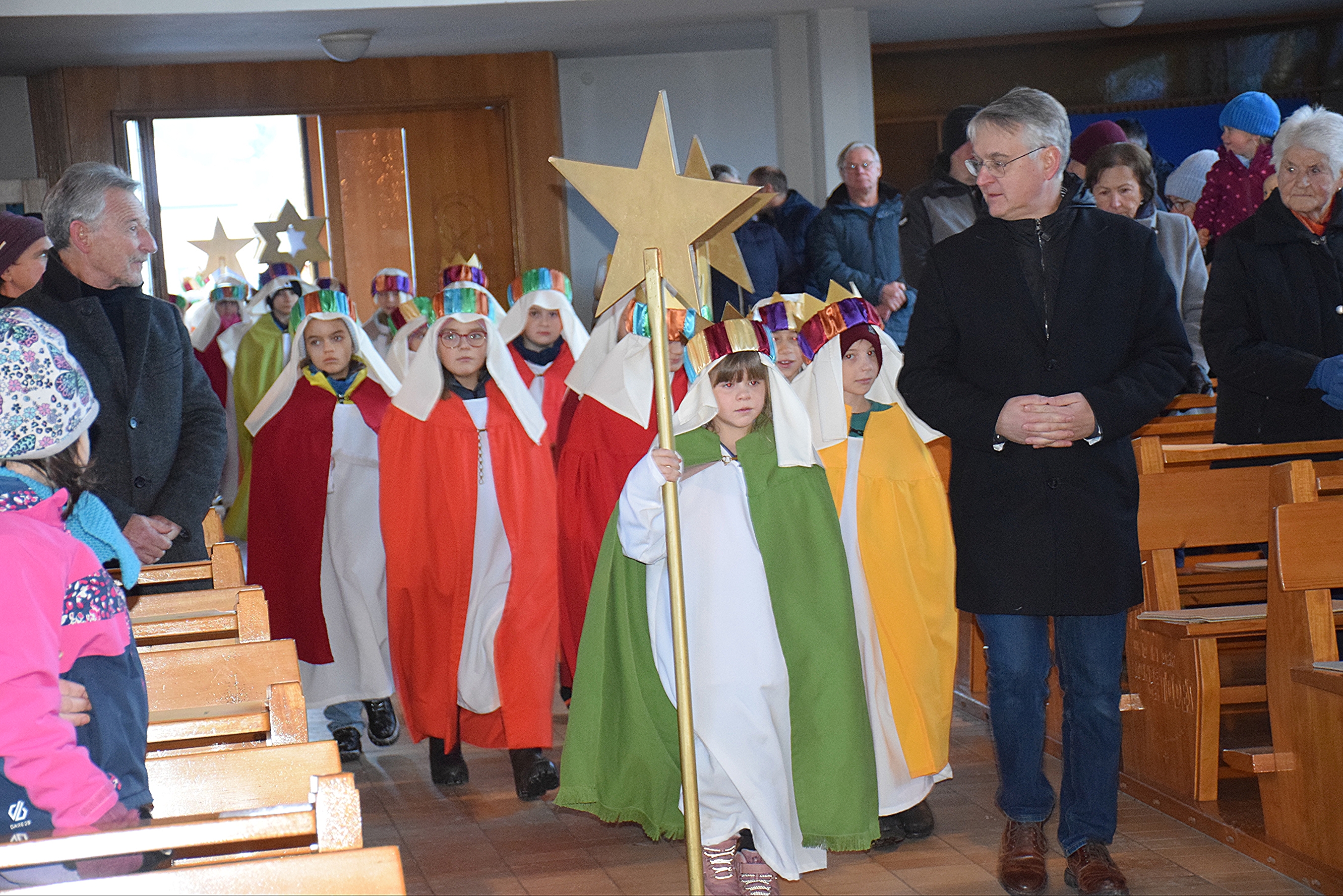 Beim Dreikönigsfest stellten sich unsere sechs Sternsingergruppen bei der Familienmessfeier mit Wilfried Blum vor und überbrachten die weihnachtliche Friedensbotschaft und Segenswünsche für das neue Jahr.